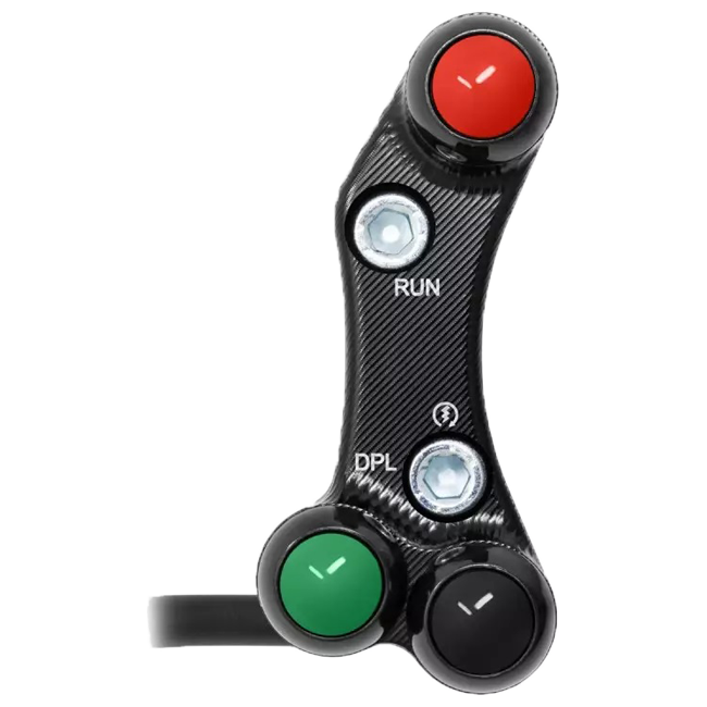 Der JetPrime Lenkerschalter für die Ducati Panigale V4/S (2018-2024) auf der rechten Seite ist eine perfekte Wahl für Fahrer, die eine präzise Steuerung und mehr Funktionalität suchen. Ausgestattet mit 3 Buttons ermöglicht dieser Lenkerschalter schnelle Reaktionen und eine einfache Bedienung während der Fahrt. Der Lenkerschalter lässt sich problemlos im „Plug & Play“-Verfahren auf dem originalen Lenkerschalter austauschen.