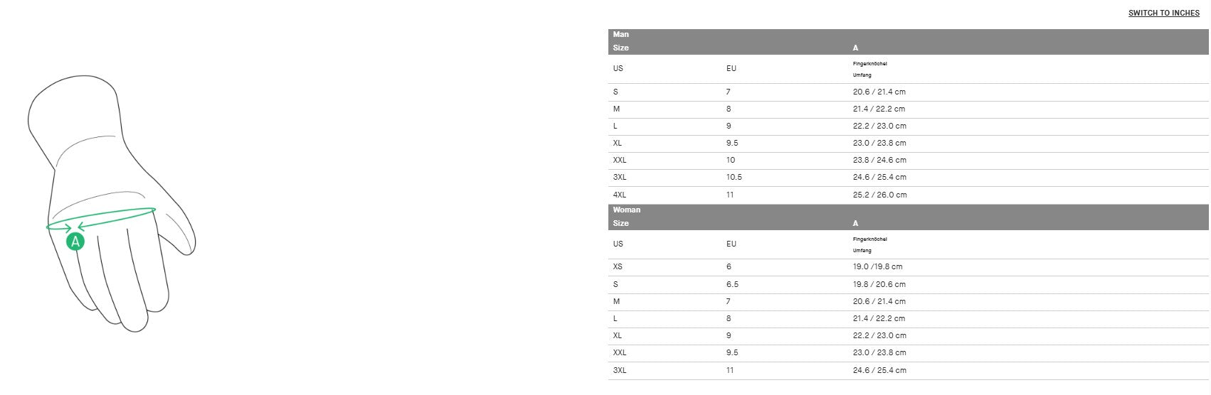 | US | EU | Fingerknöchel Umfang |