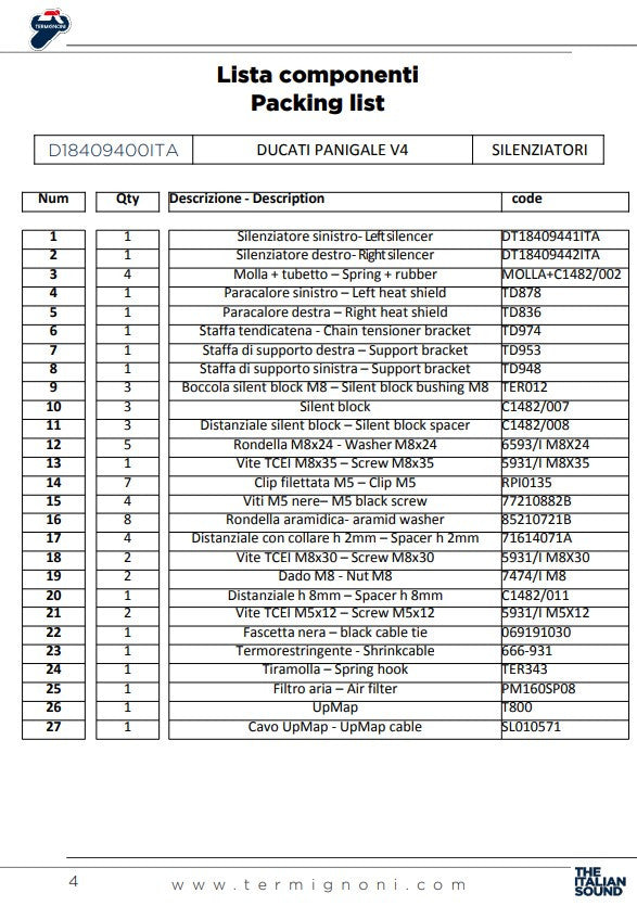 Termignoni Slip-On Kit Black Edition Ducati Panigale V4/S/R (18-24) D18409400INA